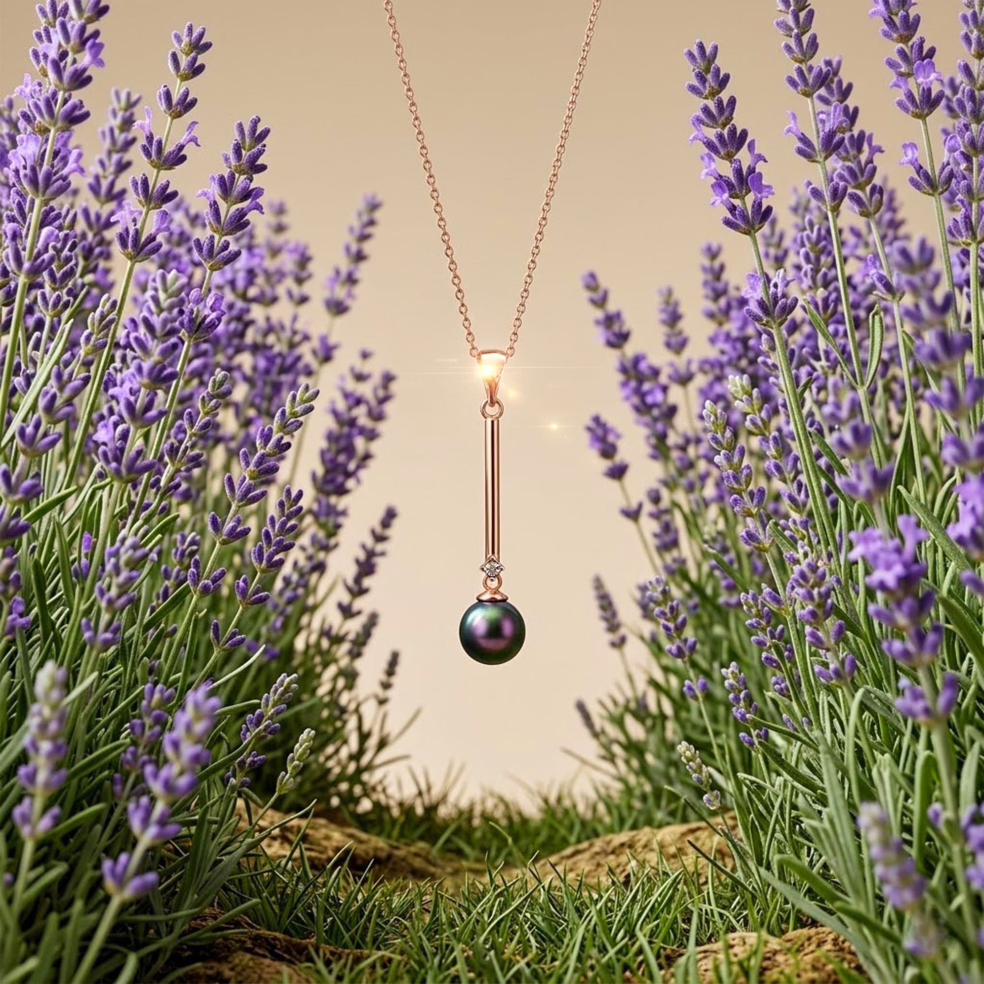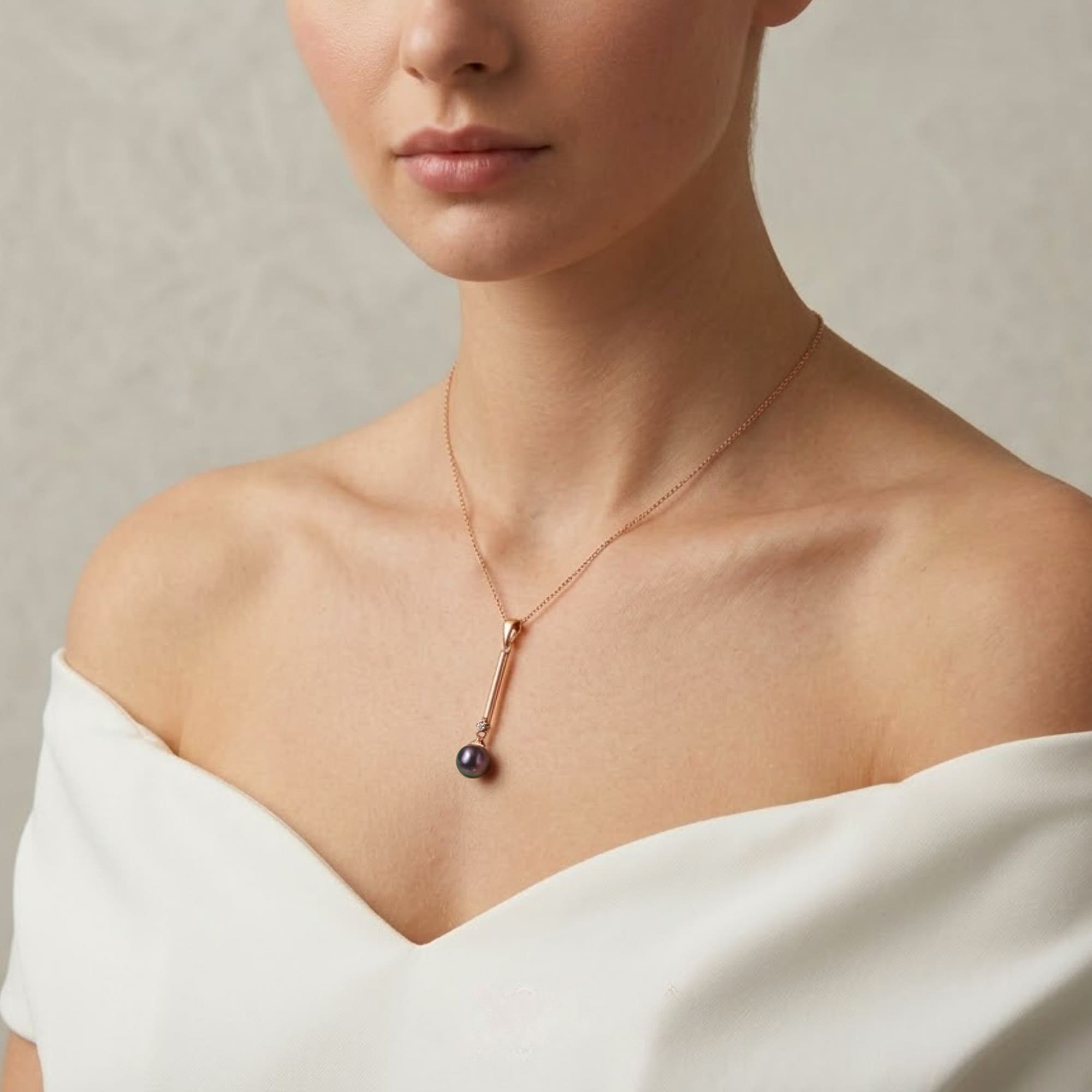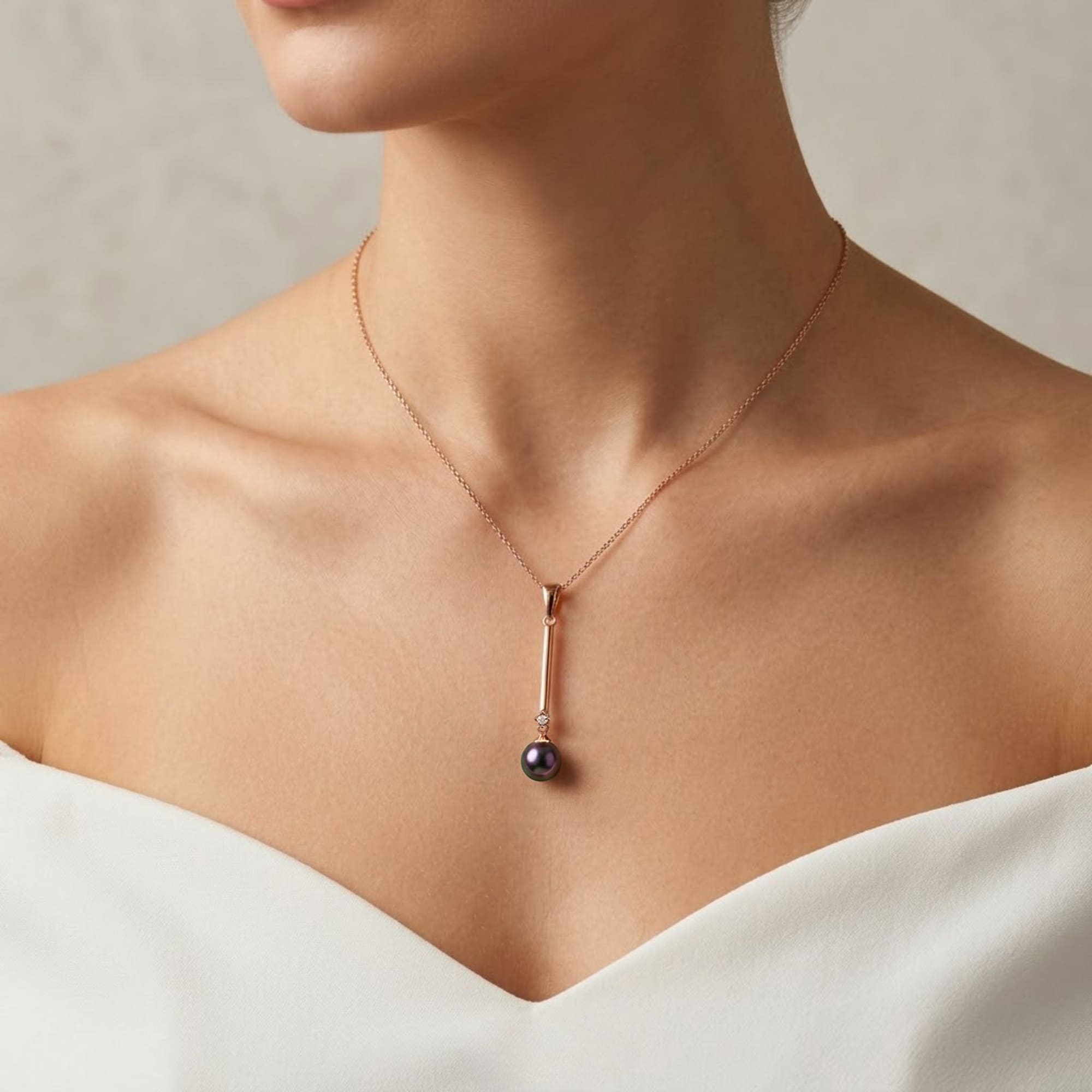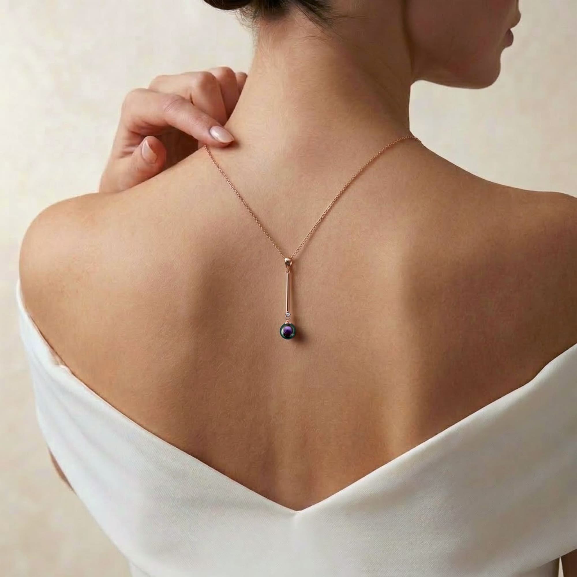 • This eye-catching necklace features a beautiful shiny 8mm pearl Swarovski® Crystal Iridescent Purple Pearls