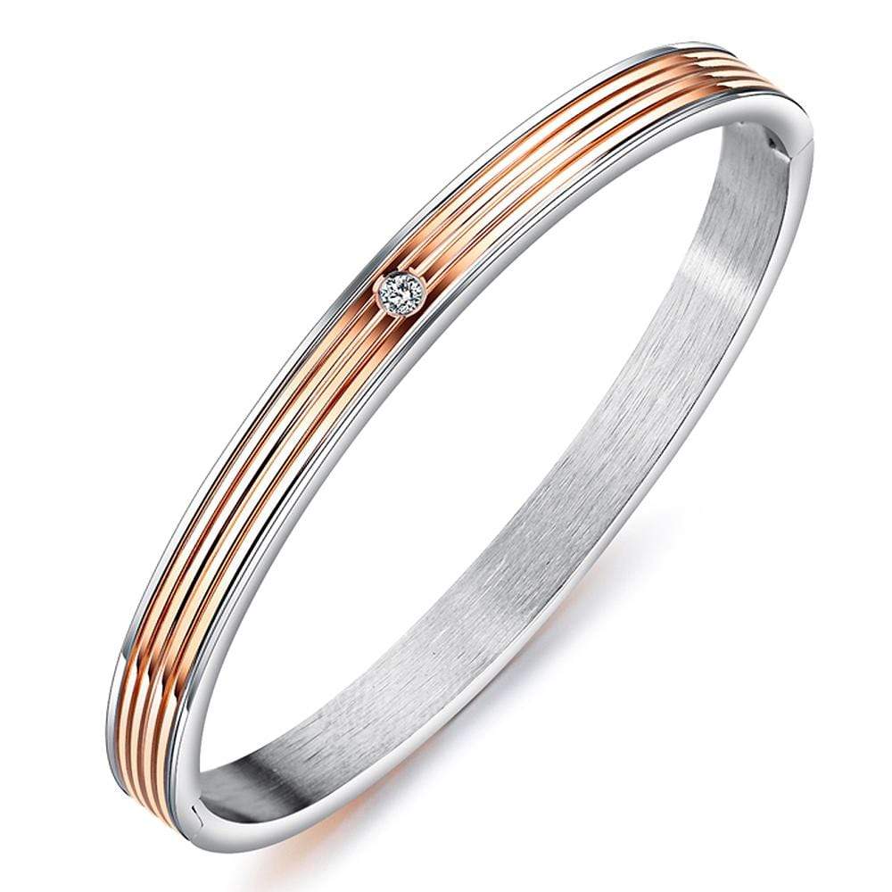 Accentuate your hands with this bold yet attractive stainless steel bangle accented with a sparkling cubic zirconia to emphasize its beauty. This ridge textured bangle is suited for any lifestyle!
