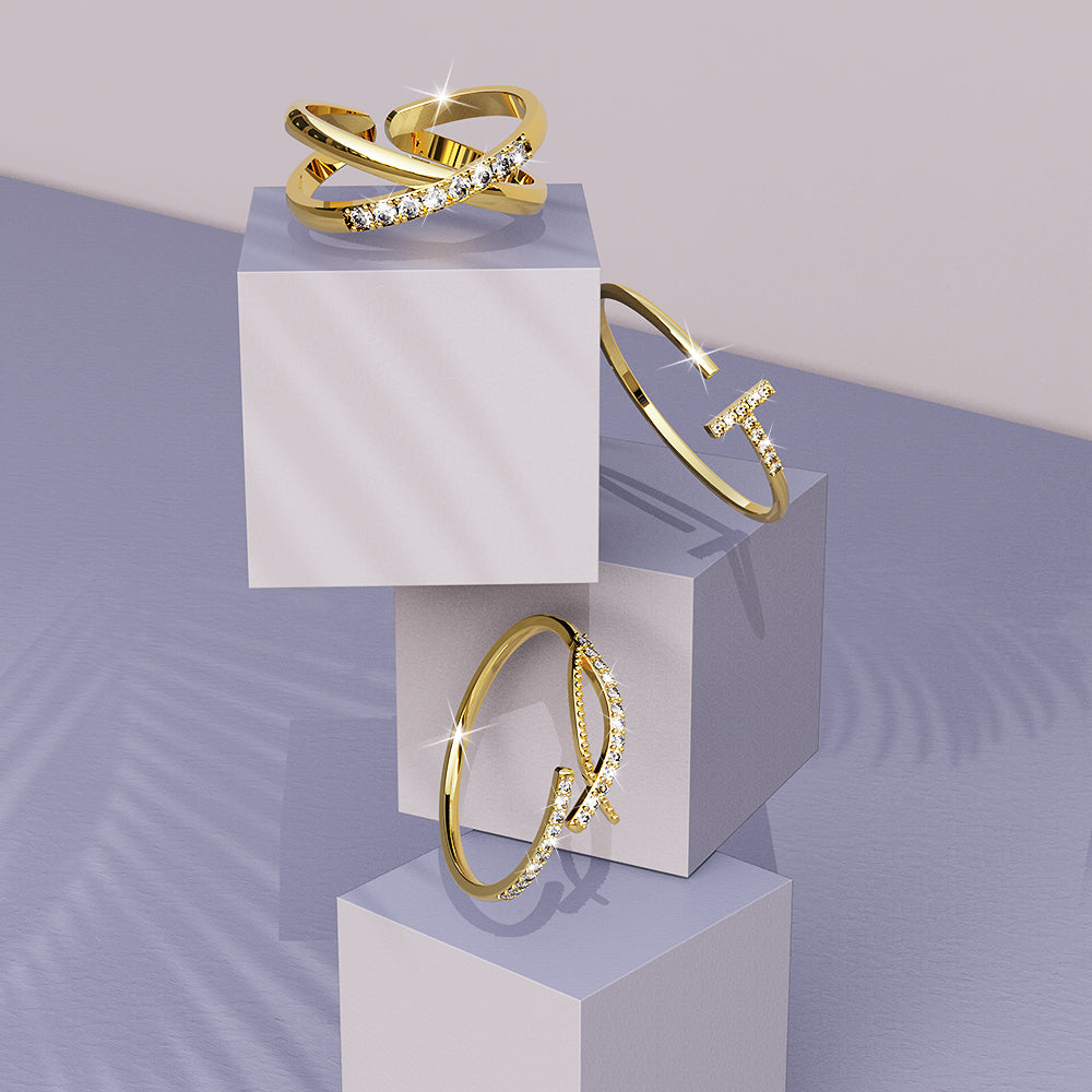 Our Solid 925 Sterling Silver Cleo Ring in Gold is a classic statement piece that will look amazing with your everyday outfits or dressed up for a night out. Whether you’re wearing a dress or a pair of jeans, the Cleo’s subtle zirconia detailing will add an unexpected touch of sparkle to your ensemble.